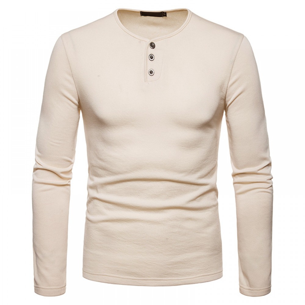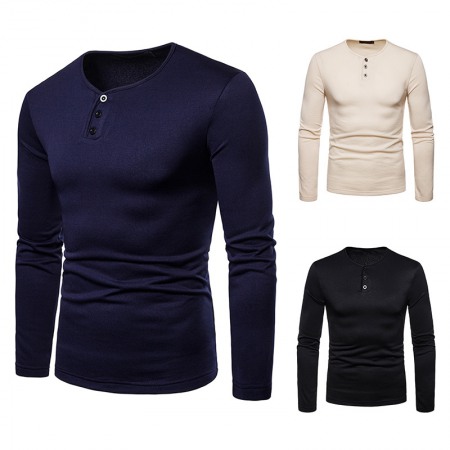 Men's Fashion Pile Collar Oblique Button Design Irregular Cut Slim Long-Sleeved T-Shirt