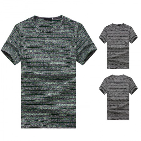 New Summer Men's Short-Sleeved T-Shirt Mens Contrast Striped Slim-Fit Casual T-Shirt