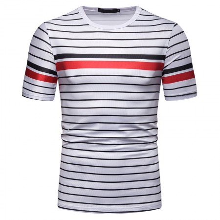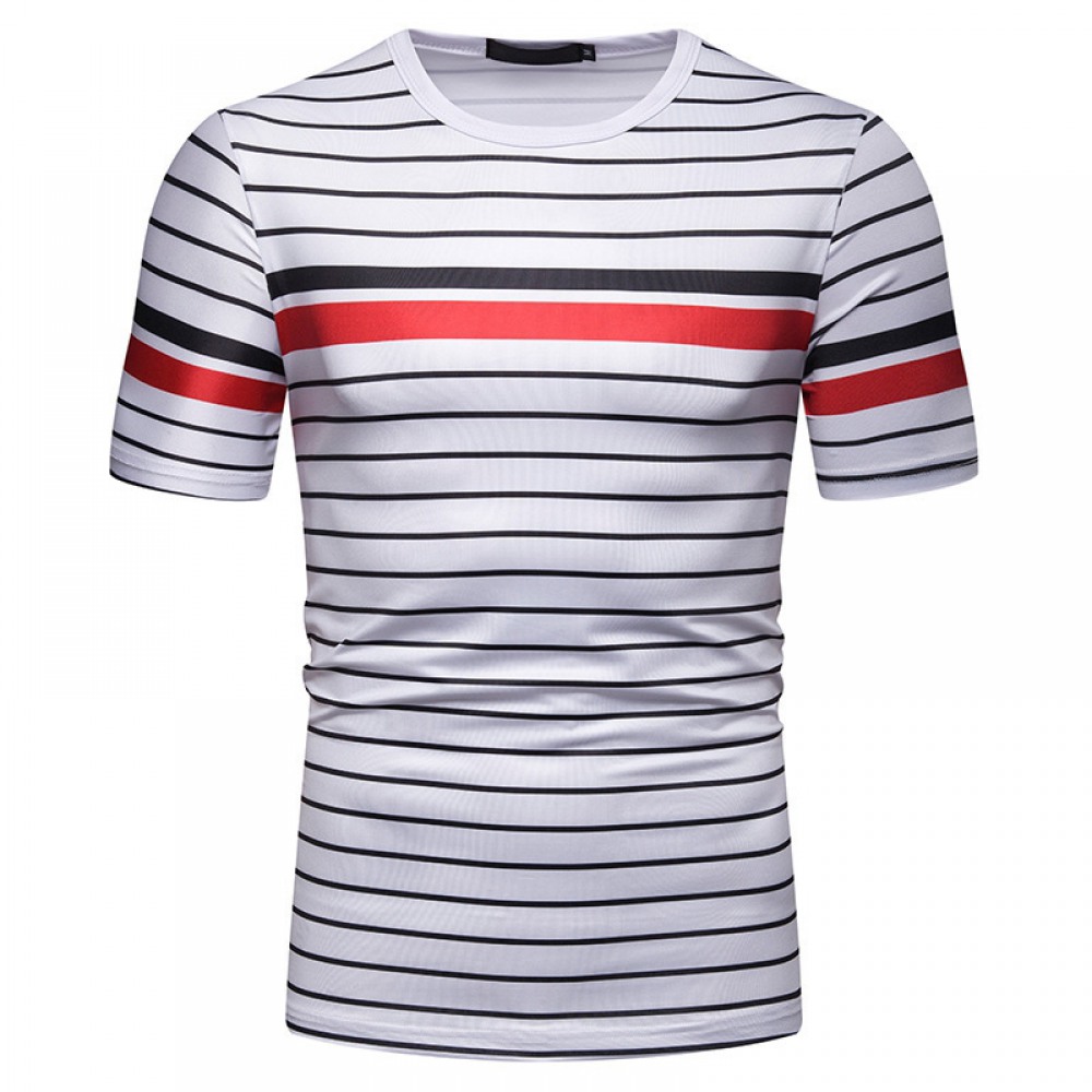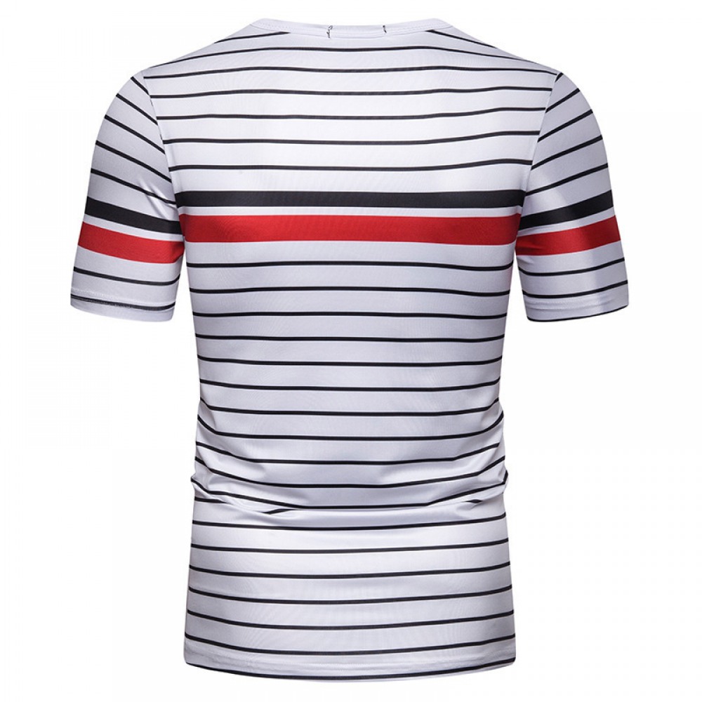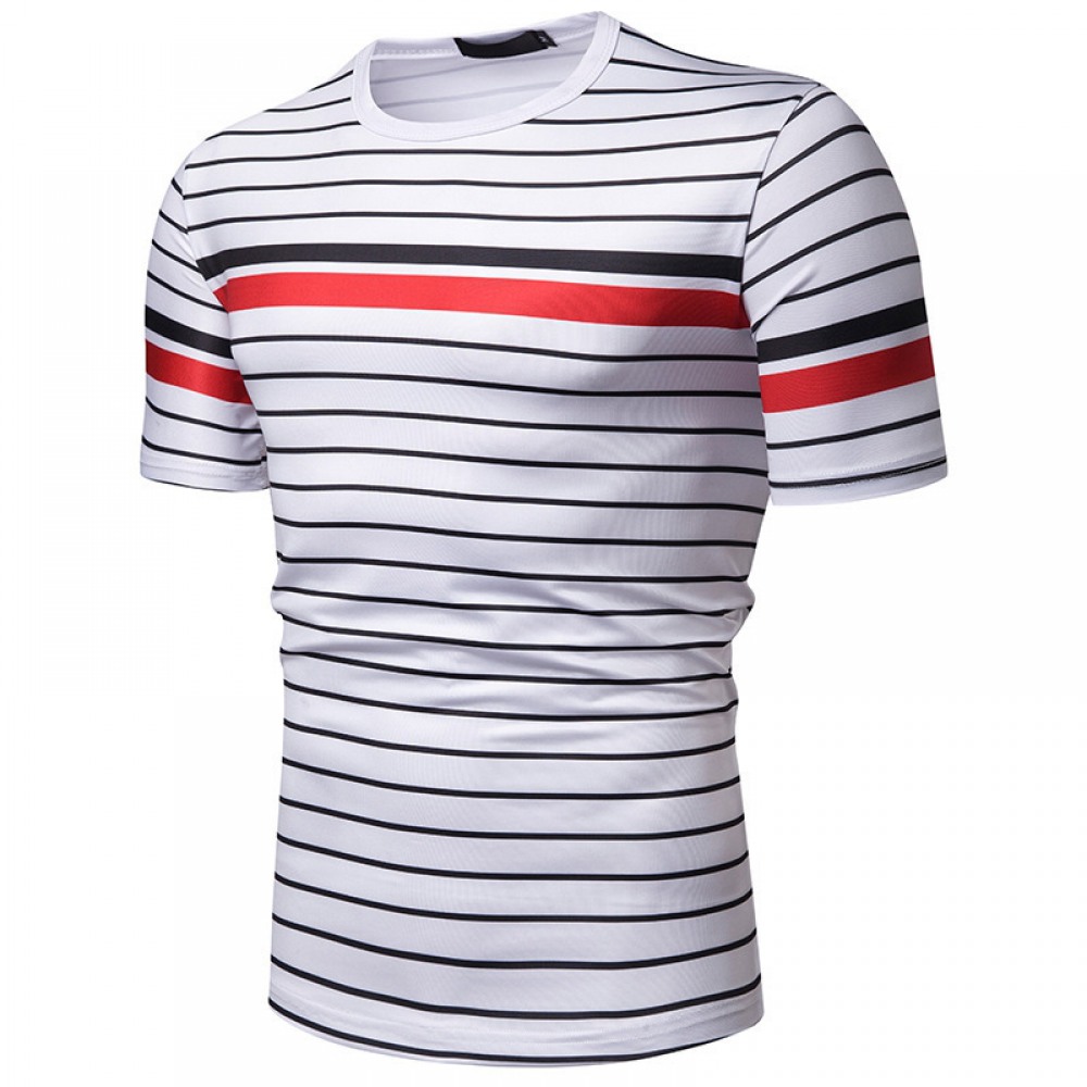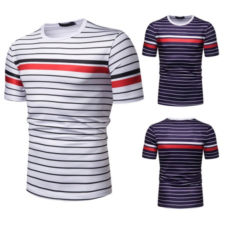 New Summer Men's Short-Sleeved T-Shirt Mens Contrast Striped Slim Casual T-Shirt
