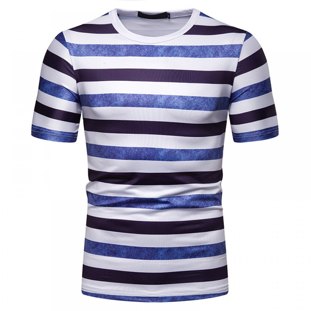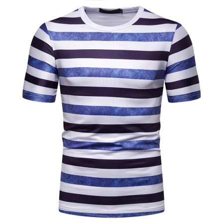 New Summer Men's Short-Sleeved T-Shirt Mens Contrast Striped Slim Casual T-Shirt