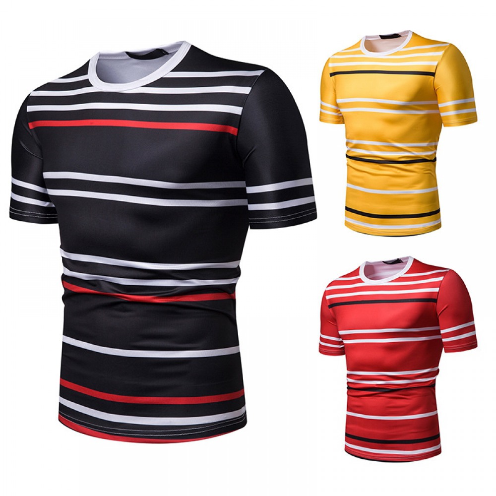 New Summer Men's Short-Sleeved T-Shirt Men's Contrast Striped Slim Casual T-Shirt