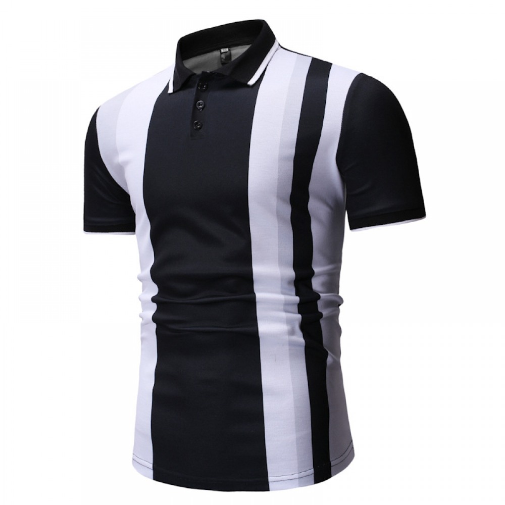 New Summer Men's Striped T-Shirt Mens Lapel Casual Short Sleeves